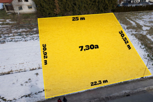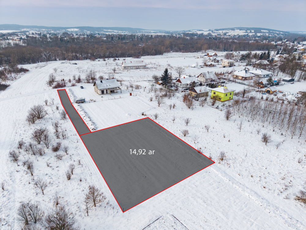 Działka równa w kształcie zbliżona do kwadratu, o powierzchni 14,92 ar, położona na nowo powstającym osiedlu, przy nowych domach jednorodzinnych.