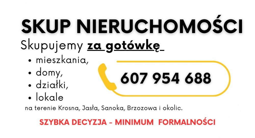 Jesteśmy zainteresowani zakupem mieszkań, domów, działek i lokali na terenie Krosna i okolic. Szybka decycja i sprawna finalizacja.