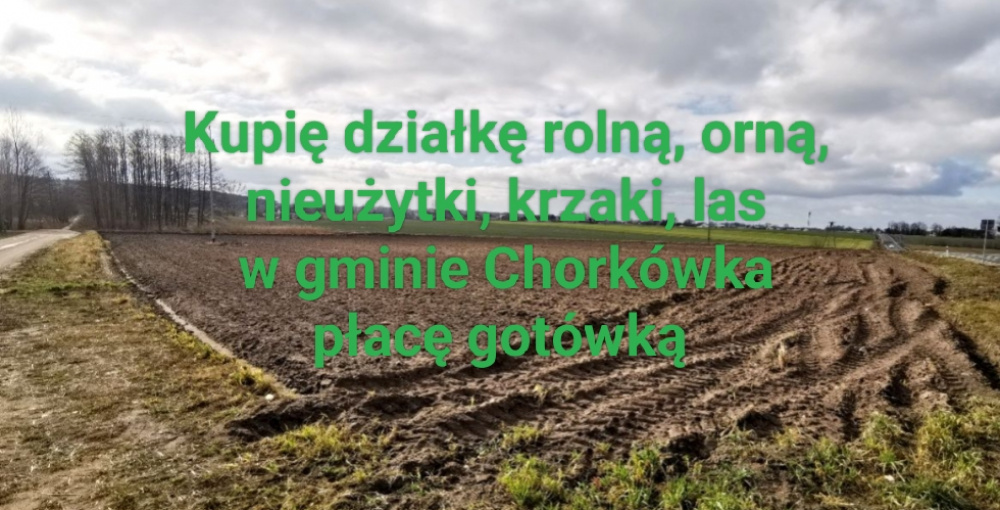 Kupię grunty w Gminie Chorkówka(Świerzowa Polska, Szczepańcowa , Głowienka, Wrocanka,Machnówka) pod uprawy . Klasa i wielkość gruntu obojętna ,rolne, krzaki ,las , nieużytki lub do oczyszczenia . Można dzwonić w celu ustalenia szczegółów . Płacę gotówka, szybka finalizacją , pomoc przy załatwieniu dokumentów do sprzedaży.