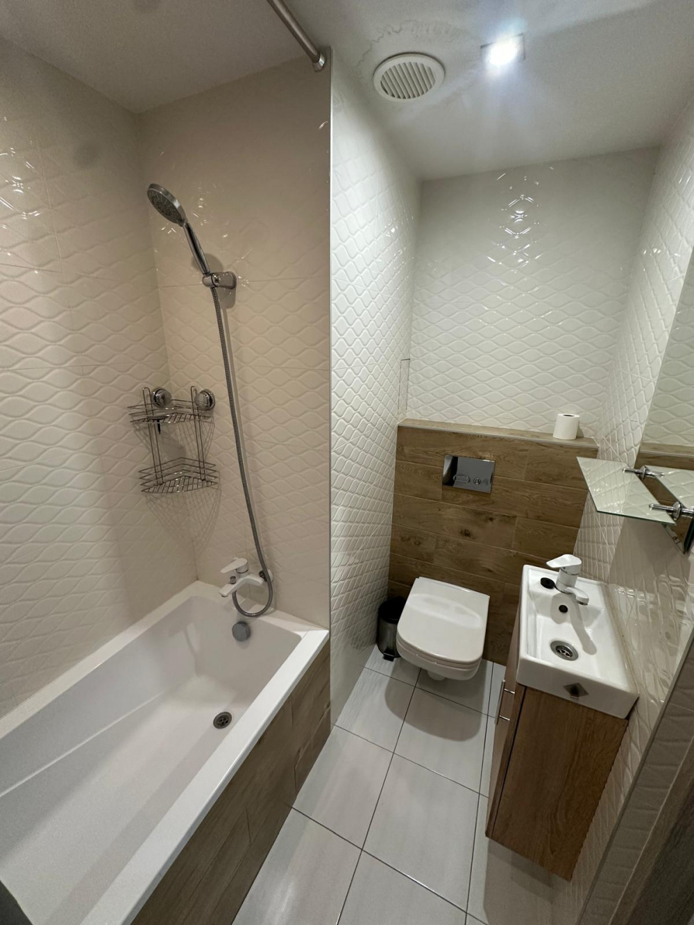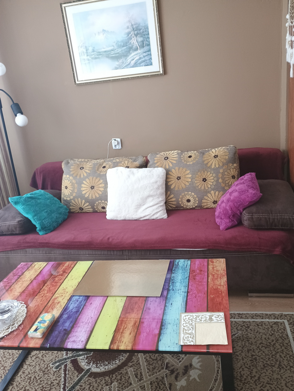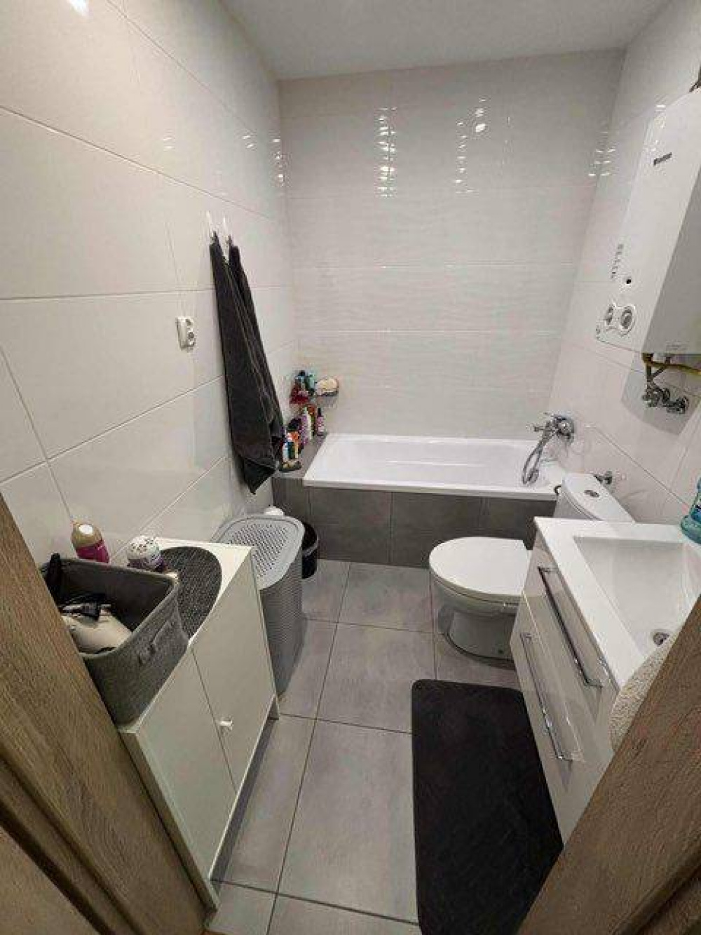 Mieszkanie 50 m, składa się z dwóch pokoi, kuchni, łazienki i przedpokoju. Mieszkanie w pełni umeblowane, duży pokój ma balkon. Jest także lodówka oraz pralka.