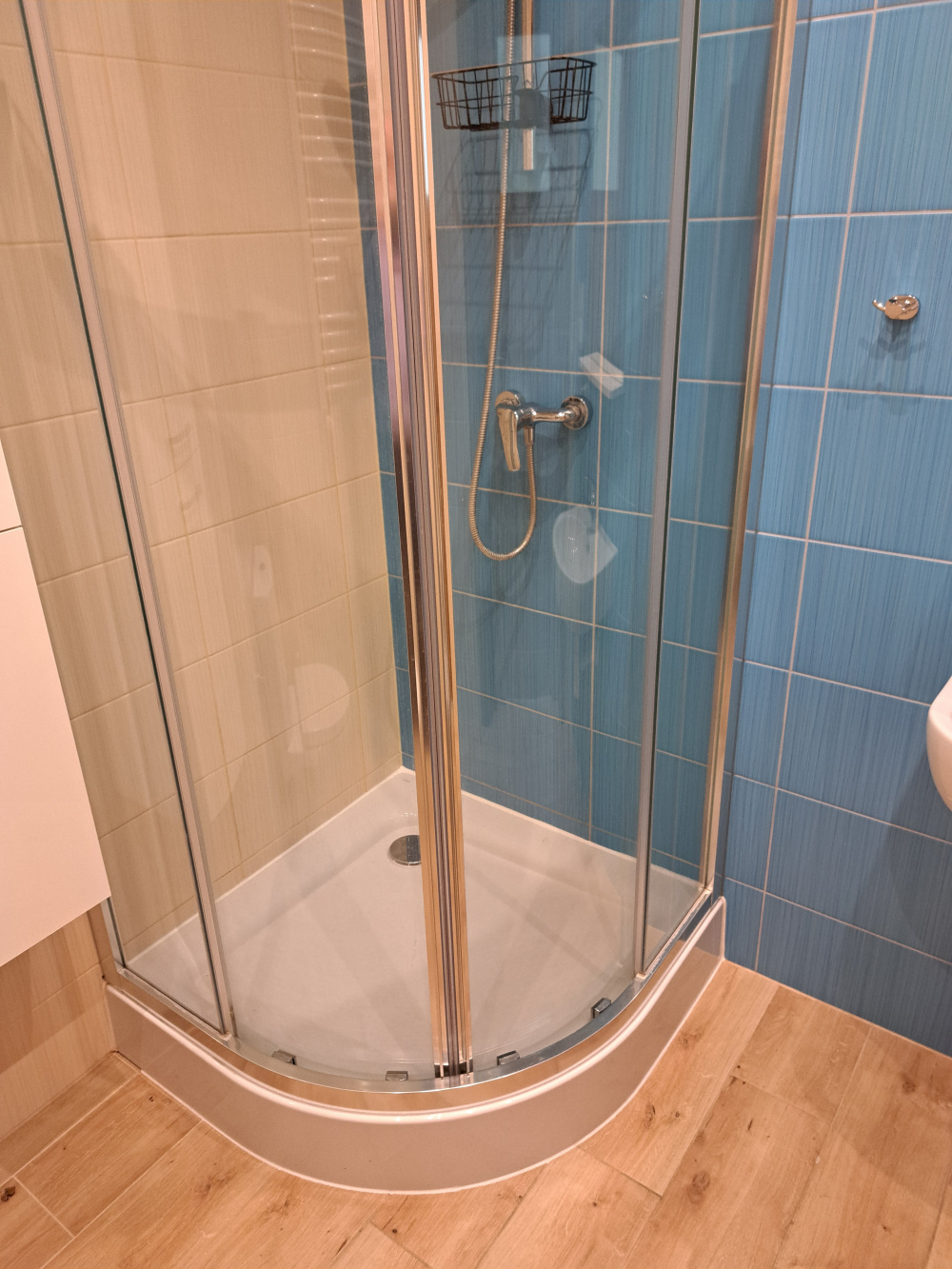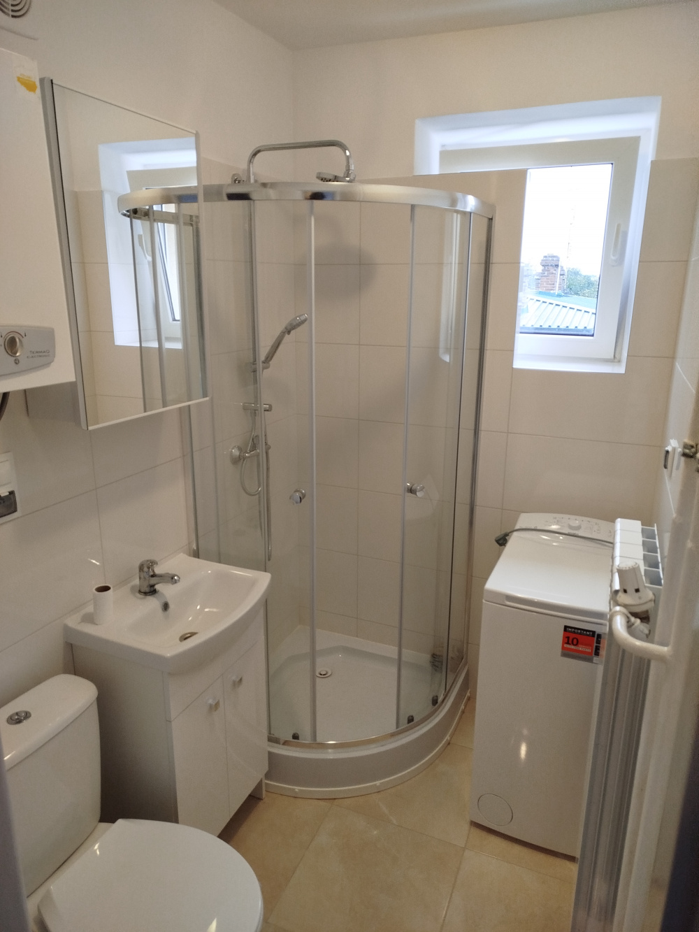 Łazienka - wyremontowana 2022 - Kabina prysznicowa, umywalka, nowe szafki łazienkowe, nowa pralka automatyczna.