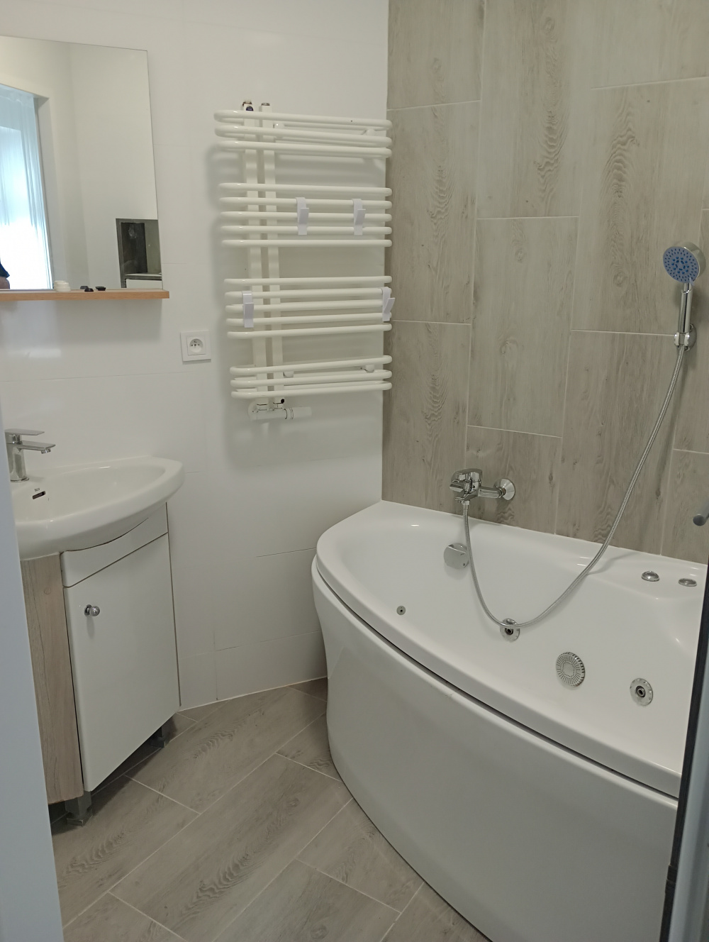 - pokoju kąpielowego z wanną wolnostojącą i prysznicem