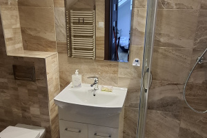 Łazienka - wyremontowana 2022 - Kabina prysznicowa, umywalka, nowe szafki łazienkowe, nowa pralka automatyczna.