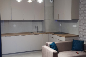 Kuchnia - nowe szafki kuchenne, kuchenka gazowa, lodówka, kuchenka mikrofalowa