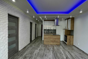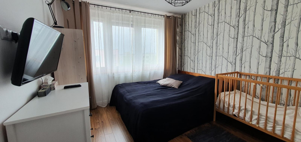 Mieszkanie 44m, salon z przestronną kuchnią, duża sypialnia, łazienka, przedpokój.