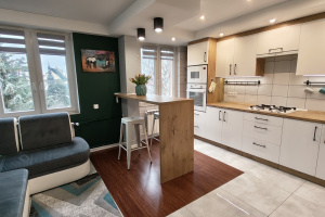 Mieszkanie o ekspozycji południowo-wschodniej, jasne, doświetlone. Składa się z salonu z aneksem kuchennym, sypialni i łazienki. Mieszkanie w pełni wyposażone. Kuchnia z meblami na wymiar, lod... (pokaż całość)