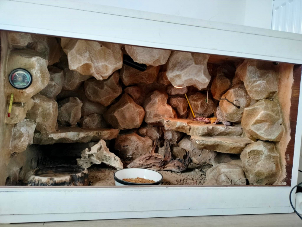 Sprzedam terrarium (80 x 50 x 50) i dwie samiczki Eublefarów lamparcich.Samiczki mają 6 la t (dożywają do 15 lat). Nie wymagają dużego zaangażowania od hodowcy,wystarczy dać jeść,nalać wody i zrosić terrarium przed wylinką gada.Cena za całość 800zł.Transport we własnym zakresie.