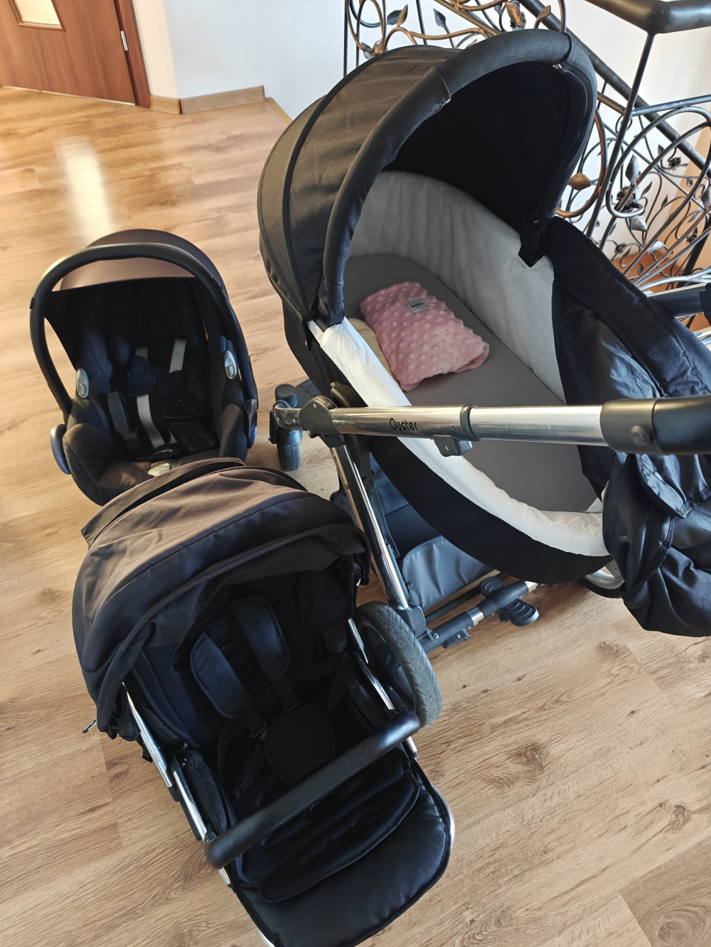 Sprzedam wózek Oyster -gondola +spacerówka +nosidełko do samochodu maxi-cosi w bardzo dobrym stanie,z pełnym wyposażeniem (ocieplacz na nóżki,ochrona przed wiatrem ,ochrona przed deszczem) ,stan bardzo dobry ,nie wiele używany,jedynie lekkie otarcie na rączce ,dodam 2 prześcieradełka.Cena za całość 400 00 zł. Sprzedaż tylko w komplecie. Odbiór tylko osobisty,okolice Krosna,Jasła.