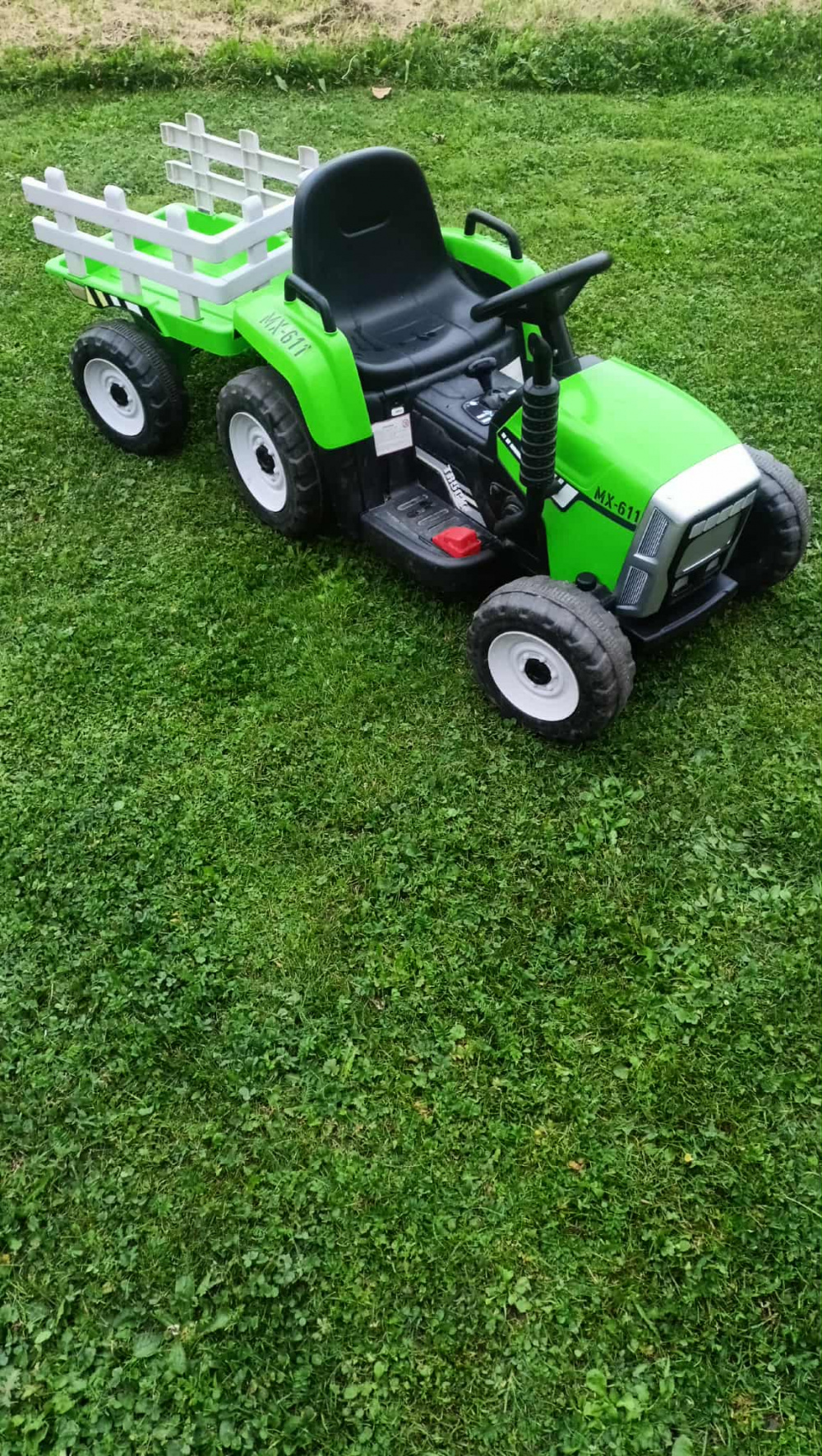 Witam mam do sprzedania traktorek na akumulator z przyczepką kolor zielony. Zasilany jest akumulatorem 12V 4,5Ah. Wejście USB. Maksymalne obciążenie 30kg.