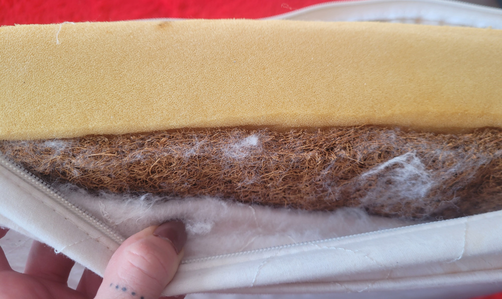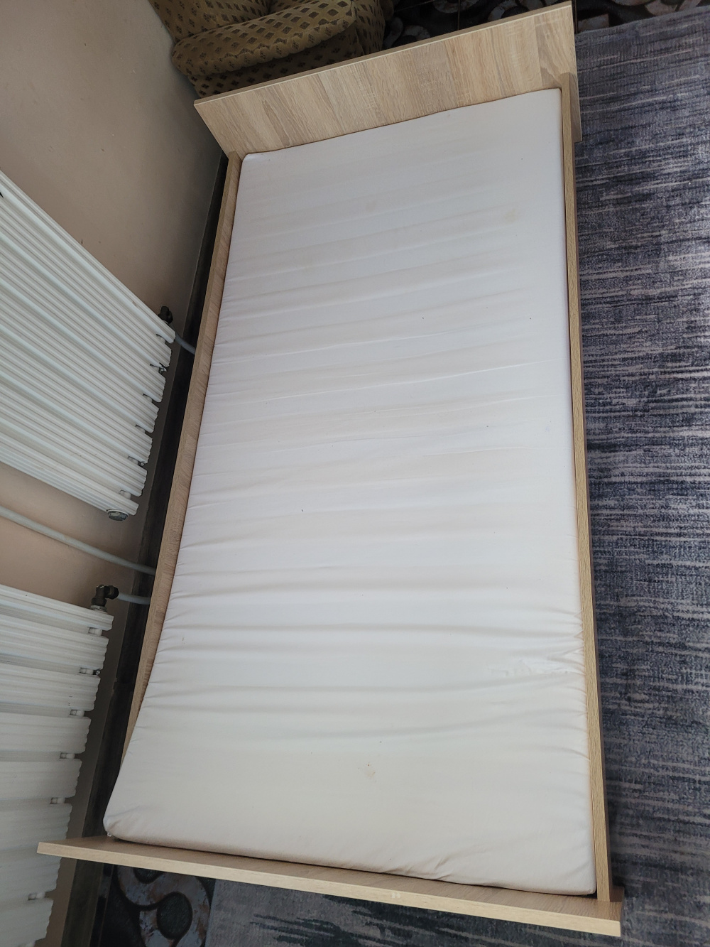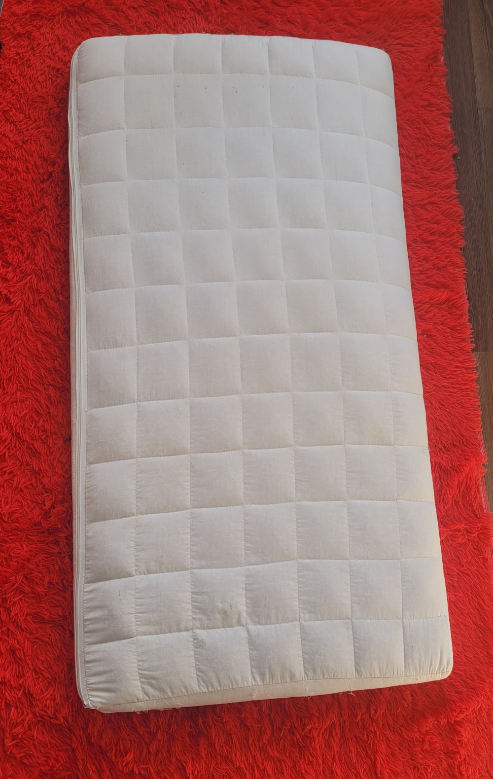 Mam do sprzedania bardzo wygodny materac. Jak widać na zdjęciu pokrowiec wymaga wyprania. Dawno nie był używany - miał rolę ochronną przed ściana dla córki ;)