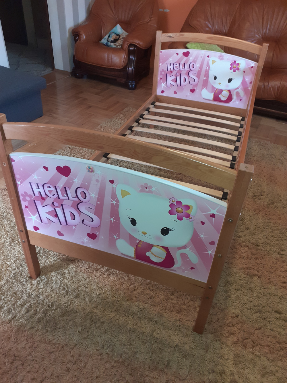 Widoczne ślady użytkowania, brak pałąka górnego do zawieszenia zabawek, lecz oprócz tego łóżeczko jest w pełni sprawne, nieuszkodzone i nadające się do dalszego używania.