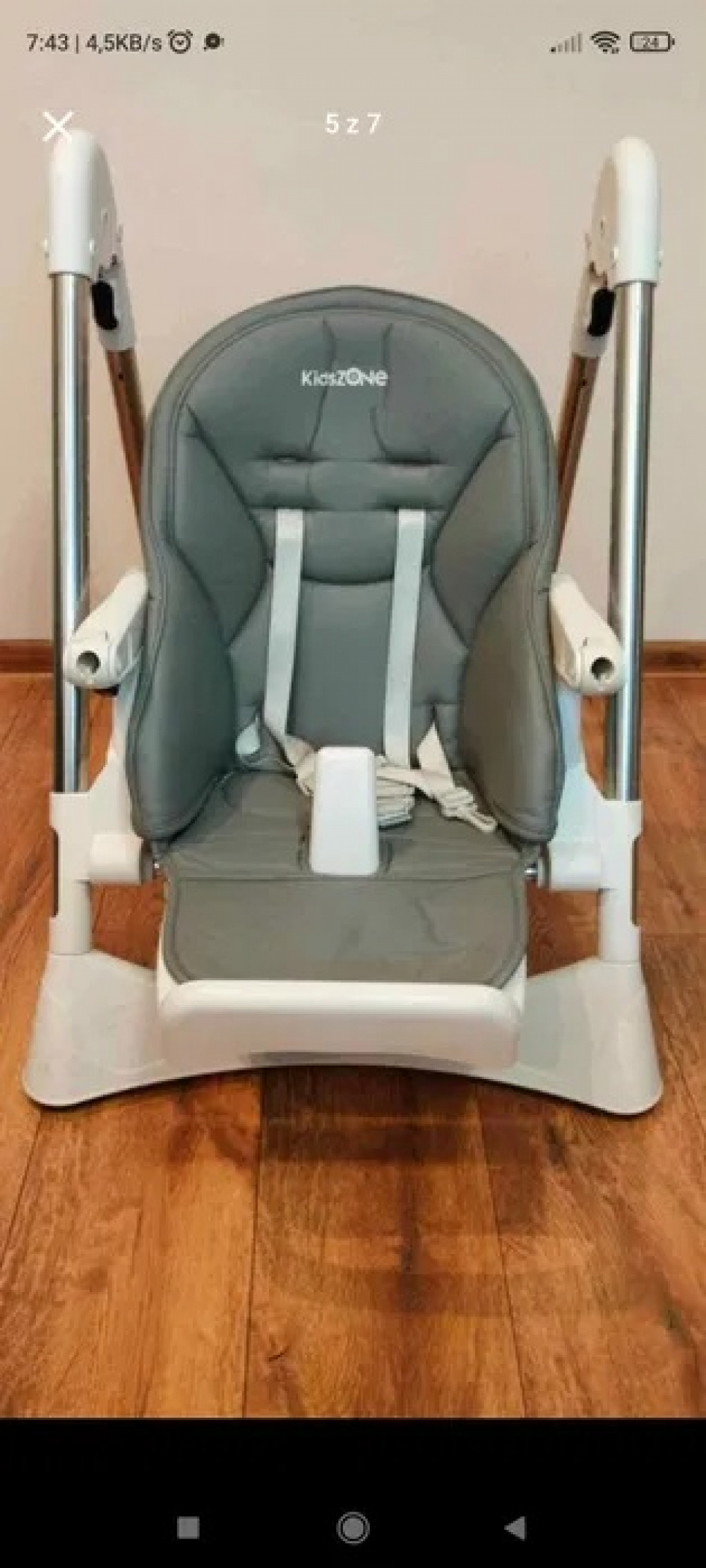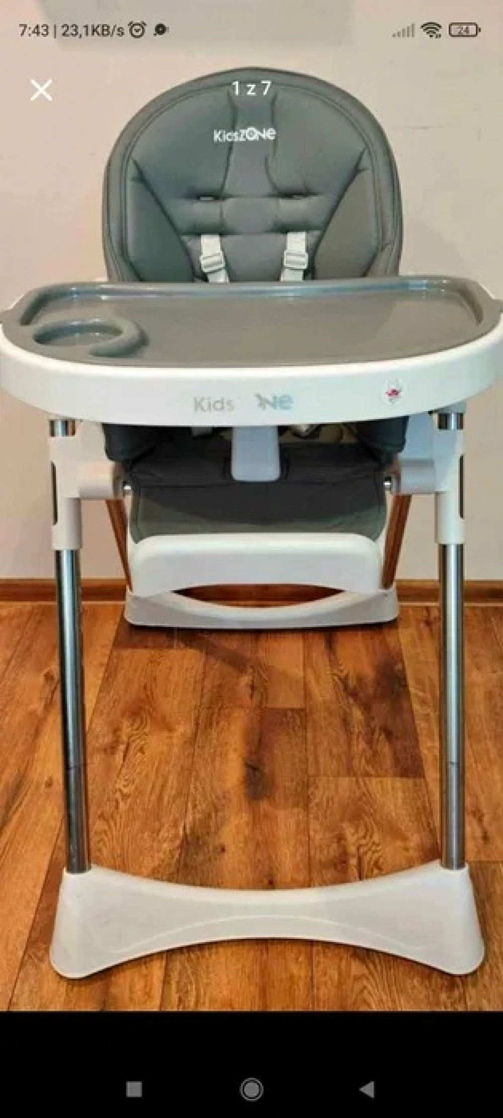 Sprzedam krzesełko do karmienia marki KidsZone wygodne wysokie. Regulacja wysokości, regulacja oparcia do pozycji leżącej, pasy bezpieczeństwa, tacka, regulacja podnóżka. Kolor szary, materiał siedziska ekoskóra. Stan dobry. Cena 89 zł.