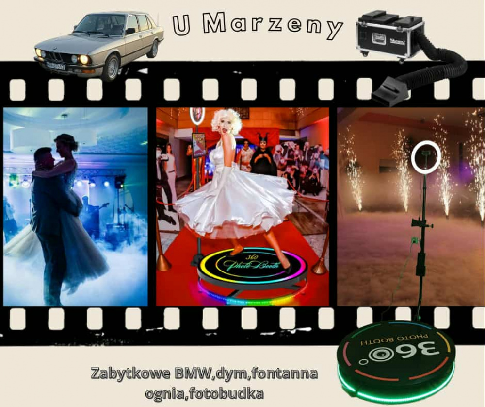 Wynajem fotobudki 360, samochód, ciężki dym, fontanna iskier