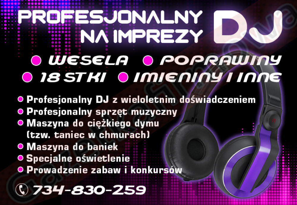 Jestem profesjonalnym dj em z wieloletnim doświadczeniem w prowadzeniu wesel poprawin 18 nastek mam doświadczenie w graniu dla dzieci na imprezach szkolnych jak i firmowych posiadam profesjonalny sprzęt muzyczny .