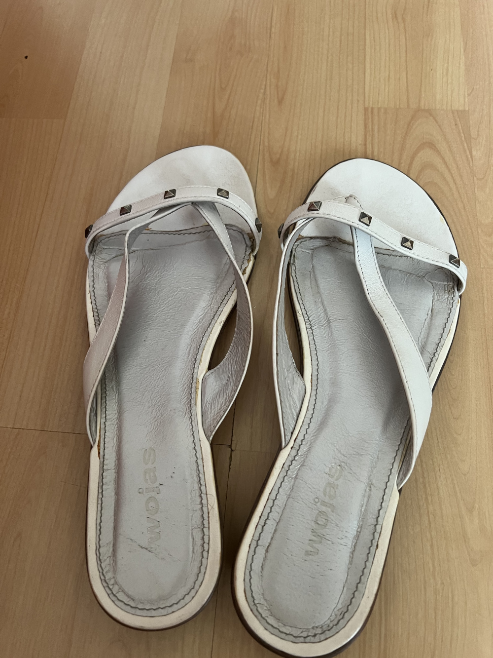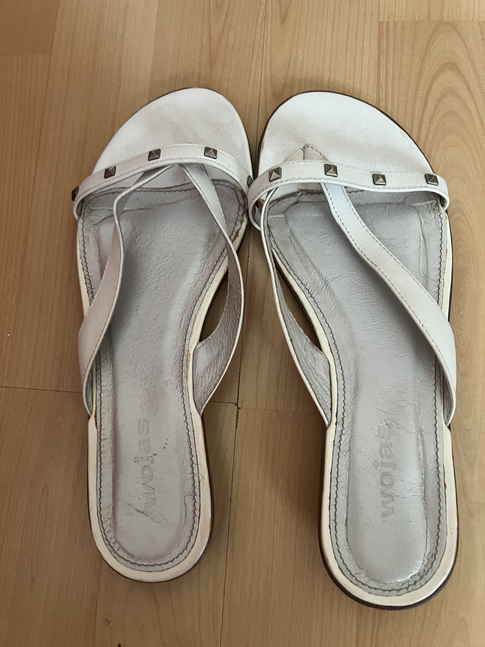 Sprzedam Dwie pary używanych damskich butów w rozmiarze 35. Jedna para to beżowe , druga to czarne sandały na obcasie. Buty są w dobrym stanie i nadają się do noszenia. Cena za dwie pary Więcej info pod tel