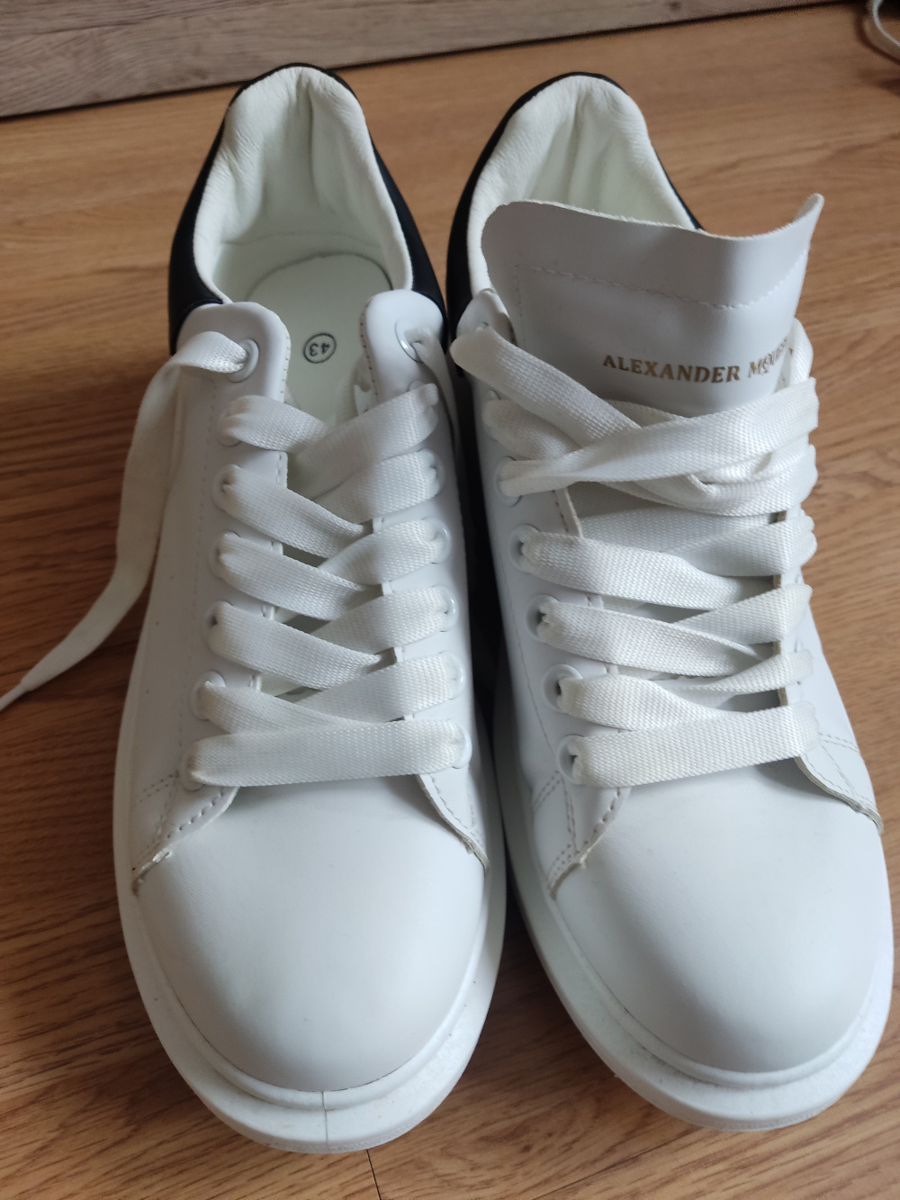 Witam, posiadam do sprzedania praktycznie nowe buty (raz założone) okazały się za małe, buty firmy Alexander McQueen.Zostały przywiezione z Anglii w rozmiarze 43 rozmiar zawyżony. Buty bez pudełka.