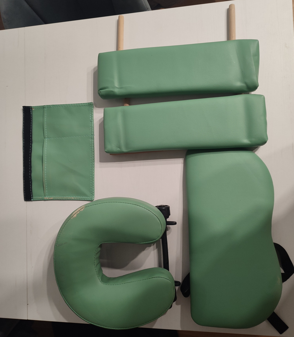Sprzedam przenośny stół do masażu, fizjoterapii. Sam stół w stanie idealnym, lekko obdarty dodatkowy zagłówek (widoczne na zdjęciach). Stół posiada pokrowiec w stanie dobrym (ma małą dziurę). Odbiór - Krosno