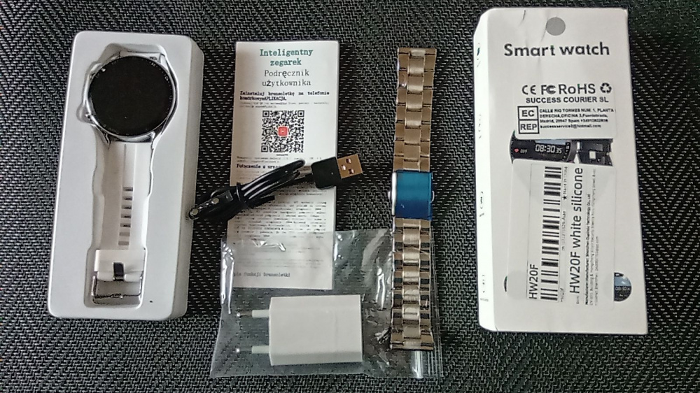 Do sprzedania nowy inteligentny Smartwatch HW20F Ekg + PPG Bluetooth Call dla Mężczyzn i Kobiet , z systemem Android Wear,Android,IOS z bransoletą metalową srebrną + białym paskiem silikonowym .