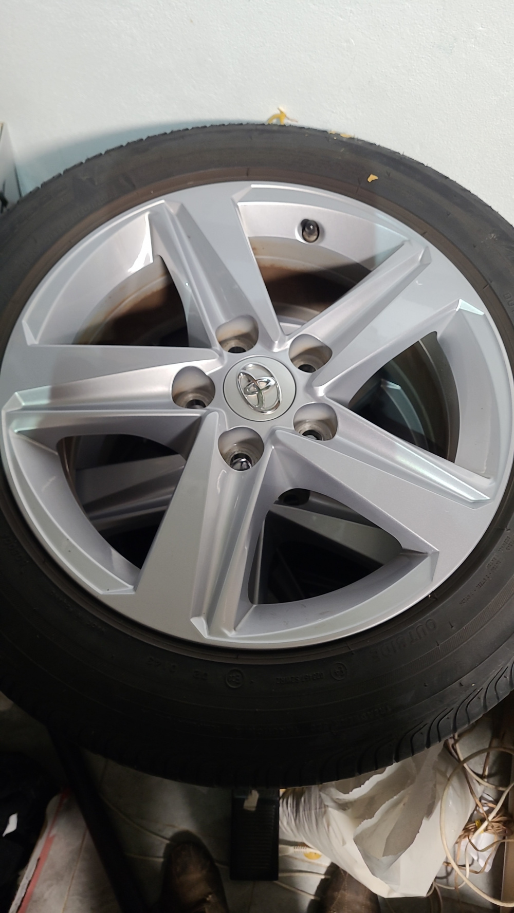 Witam Sprzedam oryginalne koła do corolli e21. Pasują też do innych modeli. Rozmiar 17 cali. 114.3x5. ET40. Czujniki w komplecie. Na felgach są opony. 2x michelin całoroczne i 2x bridgestone letnie. Na conajmniej 1 sezon. Stan felg bardzo dobry jak nie perfekt....