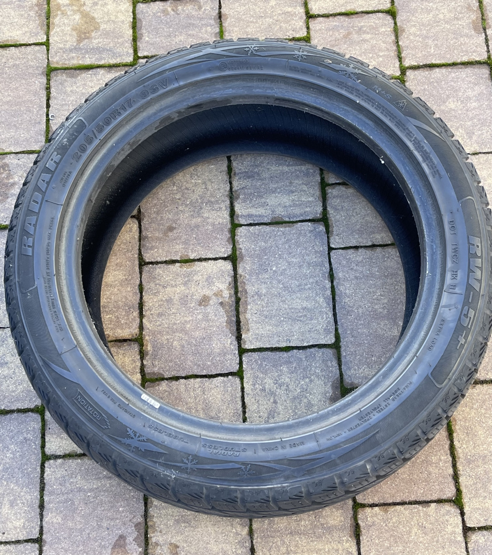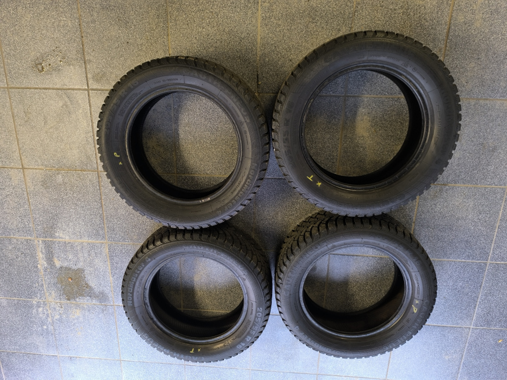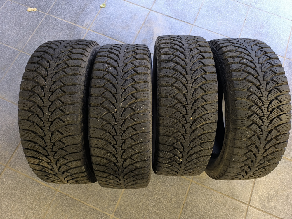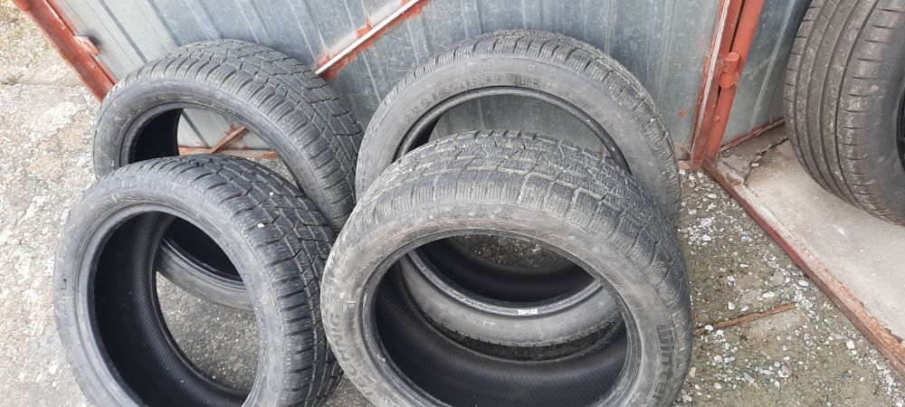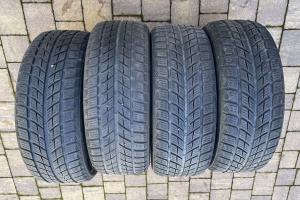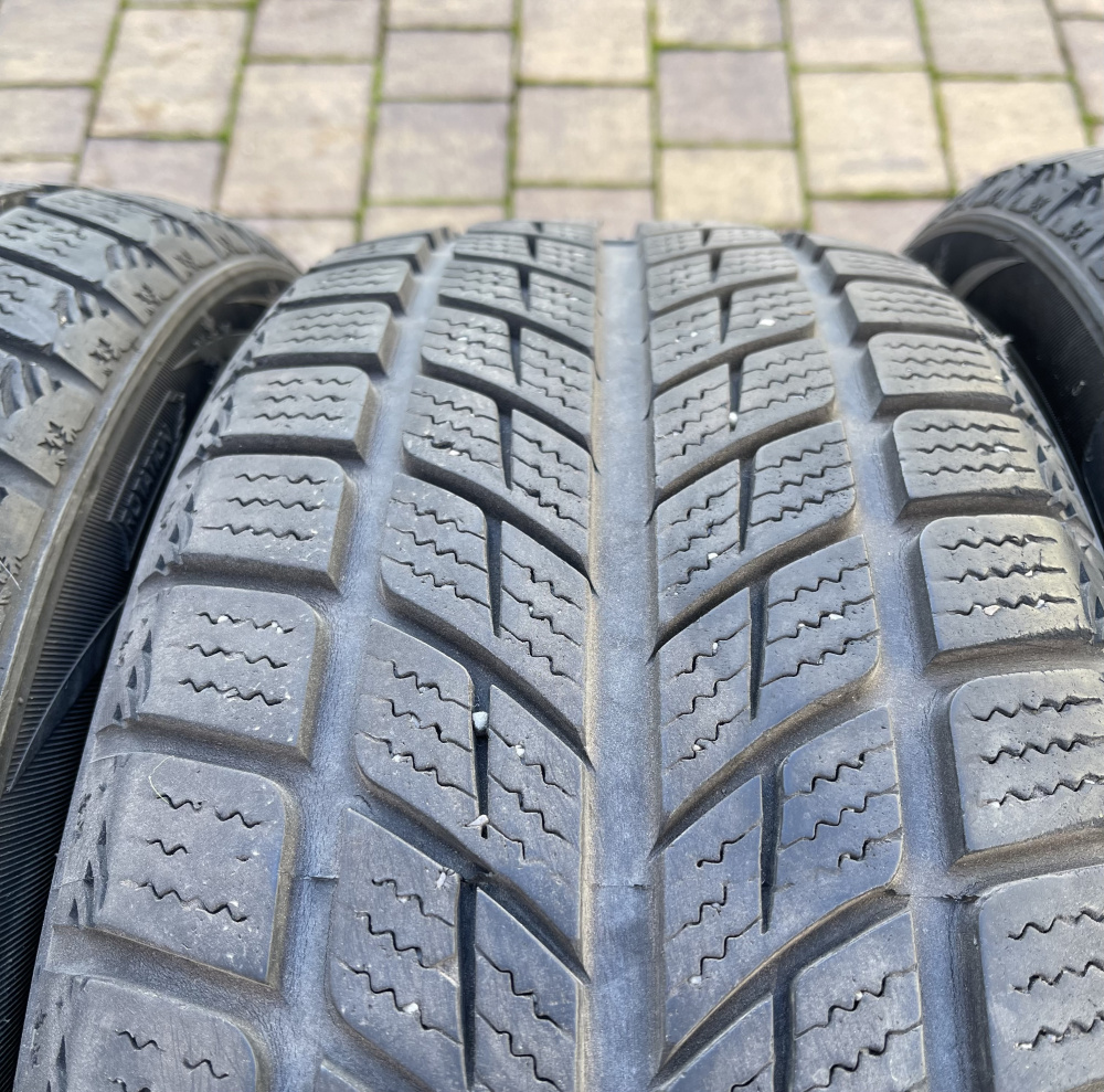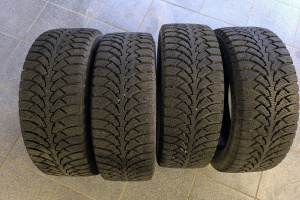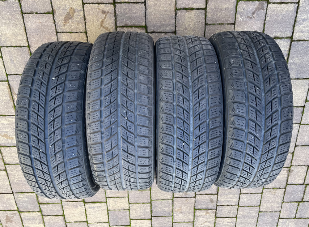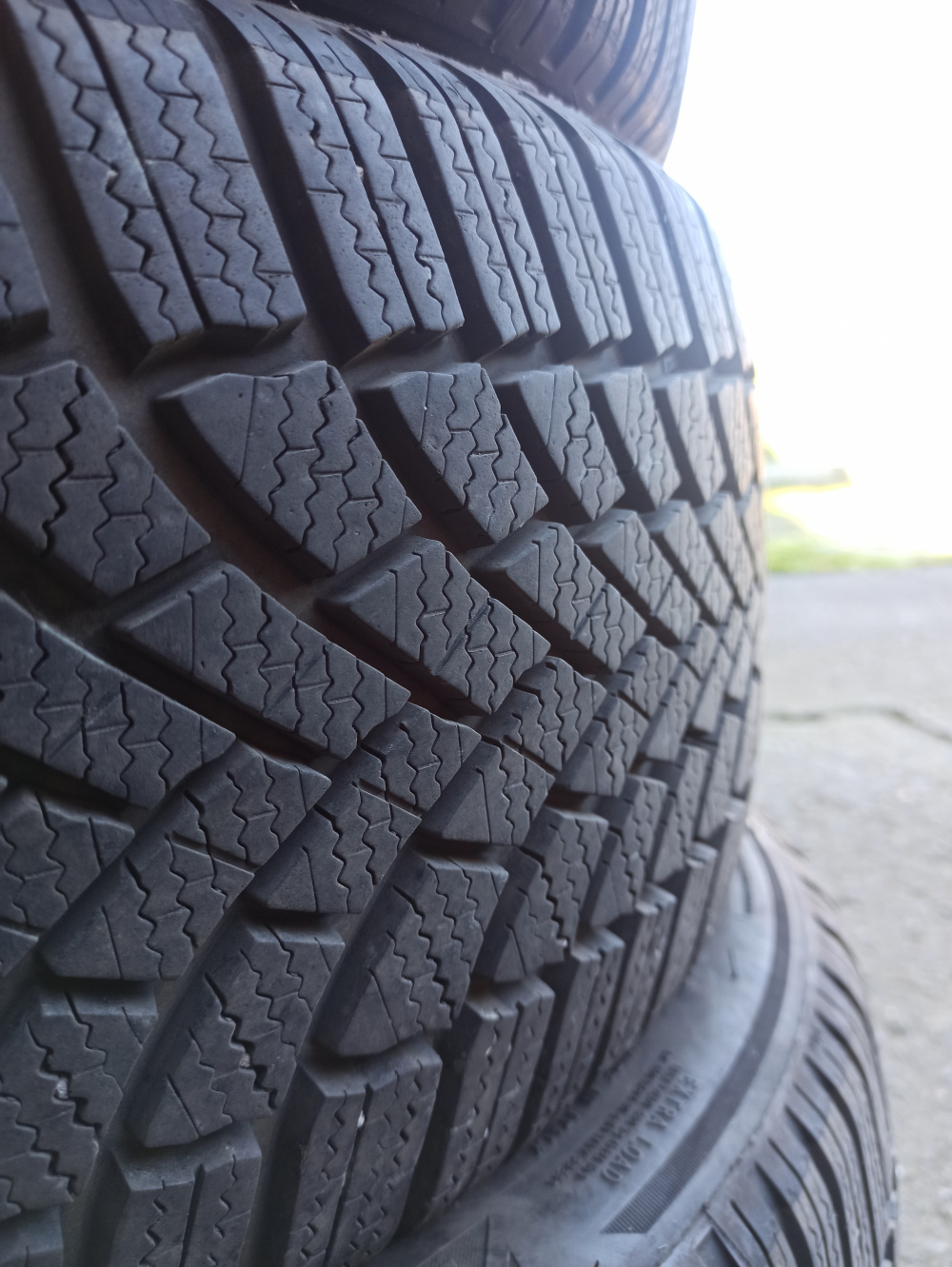 Opony równo zużyte, bez uszkodzeń, niełatane, przechowywane w
