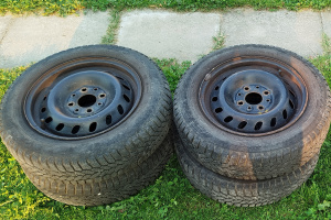 Sprzedam opony zimowe Bridgestone Blizzak, rozmiar 195x65 R15, rok produkcji 2023, używane 2 sezony, stan bdb, bieżnik wysoki. Opony na felgach od opla Vectry.