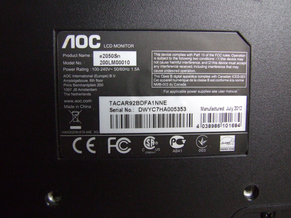 Sprzedam używany monitor AOC e2050Sn LCD LED 20" z kablami