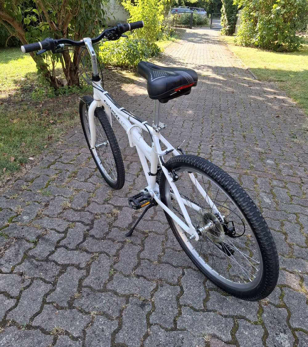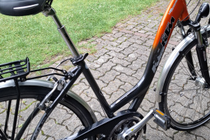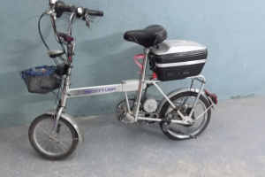 Rower posiada stycyjke z kluczykami,wskazniki napiec,wylacznik glowny ,swiatla z tylu i z przodu ,kierunkowskazy,sygnal,dzwonek ,pompke ,koszyk i wiele nowych czesci . Kolo przednie 14cali,kolo tylne 16cali .Do rowera dodaje ladowarke,opnyi detki nowe i inych kilka nowych czesci.