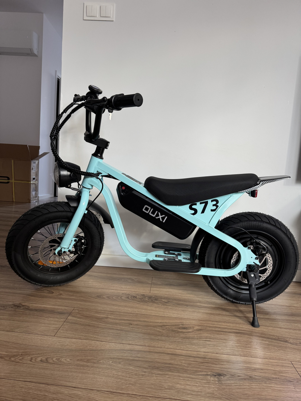 Skutereker elektryczny dla dziecka 6-10 ,wysokosc siedzenia 50 cm,lat Idealny na dluzsze wycieczki szosowe i gorskie., 250W, kola 14 cali,zasieg 35km,predkosc 25 km/h, hydrauliczne hamulce , manetka , swiatla led, 5 trybow predkosci ,dostepne kolory blekitny, szary i popielaty.Ladowarka do kontaktu 220V. Doskonaly prezent na 1 Komunie Swieta