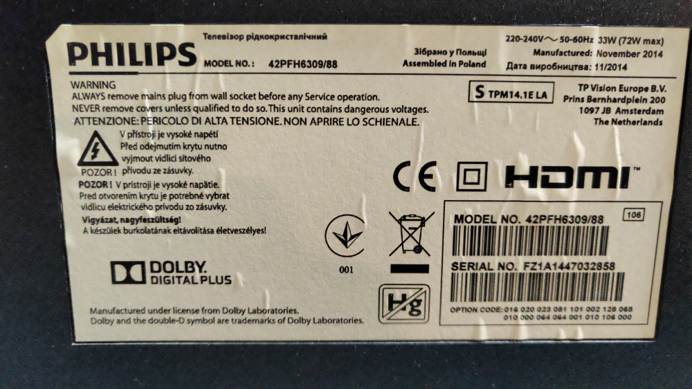 • Porty: HDMI, USB, 3,5 mm audio