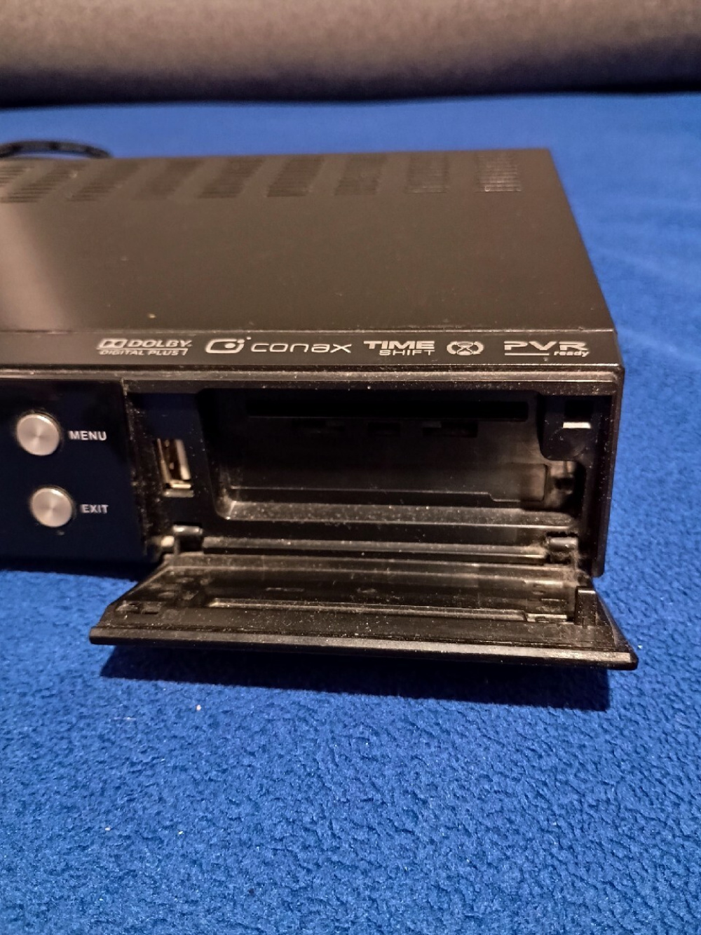 Funkcje: nagrywanie z USB (PVR, Timeshift), czytnik kart Conax, wyjścia HDMI/SCART, odtwarzanie multimediów z USB.