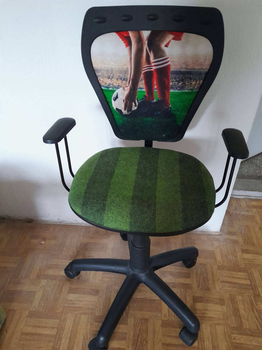 Sprzedam krzesło obrotowe dla młodego fana piłki nożnej.