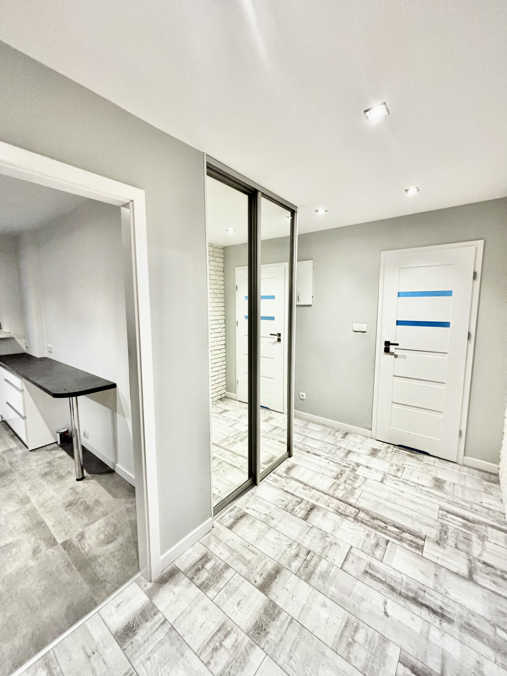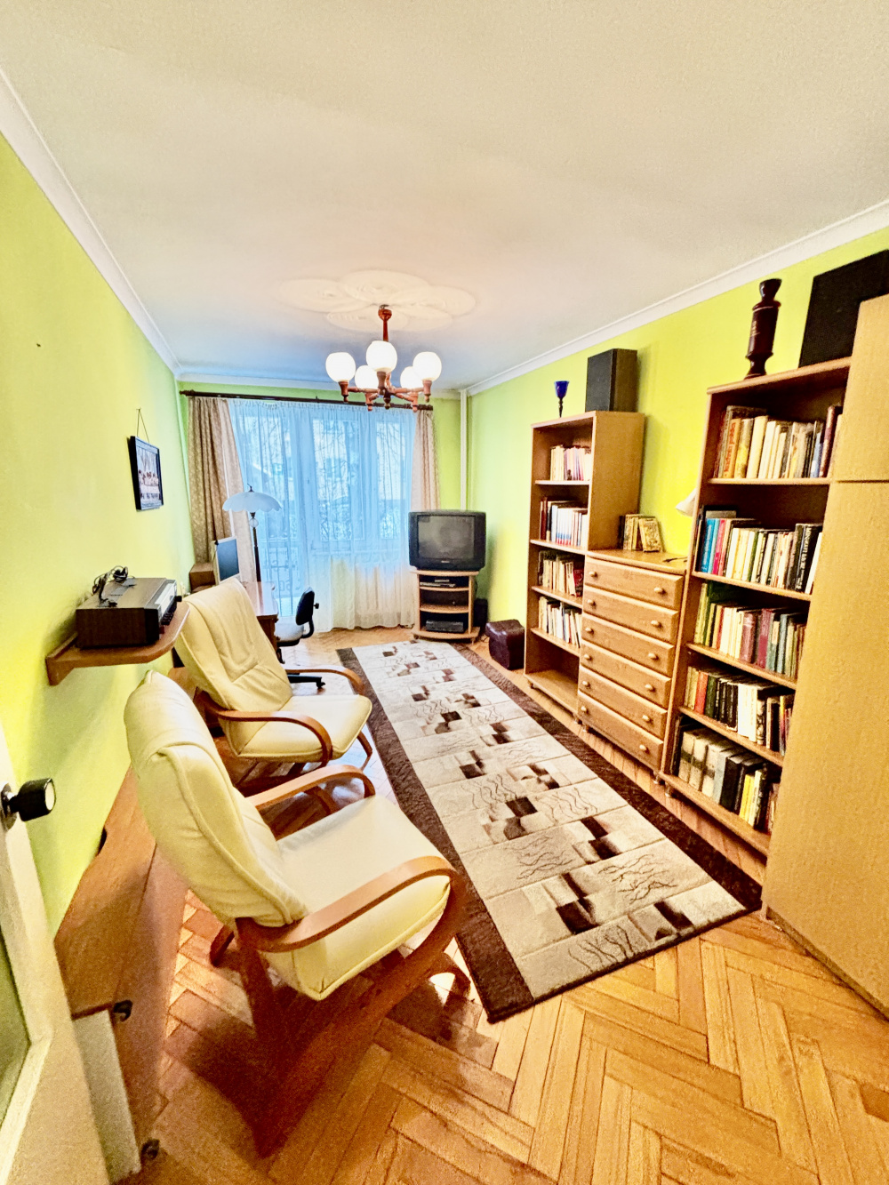 W mieszkaniu ściany gładzone, na podłodze w pokoju parkiet. Okno drewniane, w bardzo dobrym stanie technicznym.