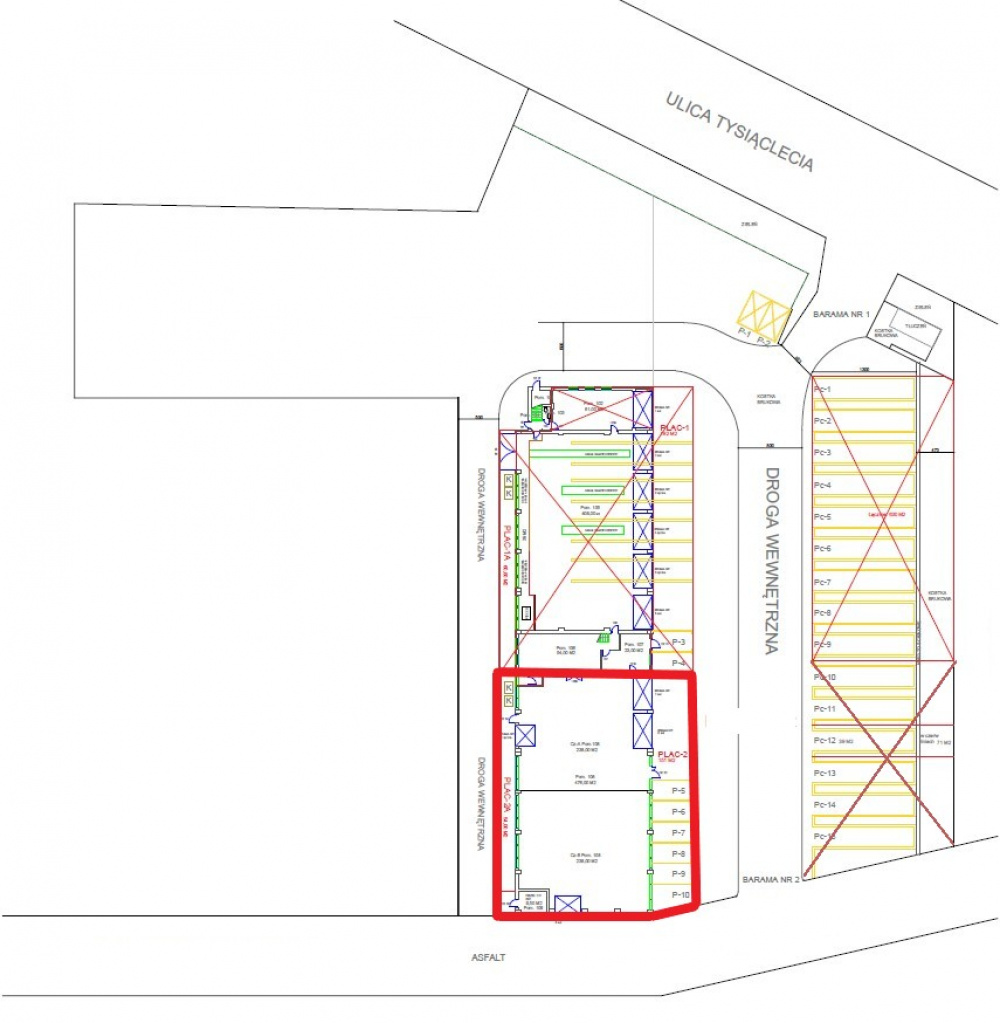 Nieruchomość posiada atrakcyjną lokalizację, dobry dojazd i dojście do budynku, przy głównym szlaku komunikacyjnym - dojazd bezpośrednio z ulicy Tysiąclecia, teren częściowo ogrodzony, monitorowany.