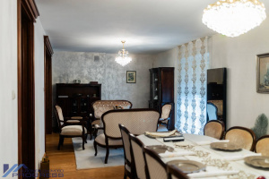 Budynek mieszkalny o powierzchni użytkowej 164 m2, całkowitej przeszło 220m2, wybudowany w końcu lat 70-tych, murowany z pustaka i cegły, ściany i strop piętra ocieplone styropianem 8cm, kryty blachą trapezową, okna PVC i drewniane, na podłogach parkiet, panele i płytki, ogrzewanie na gaz oraz drewno lub węgiel.