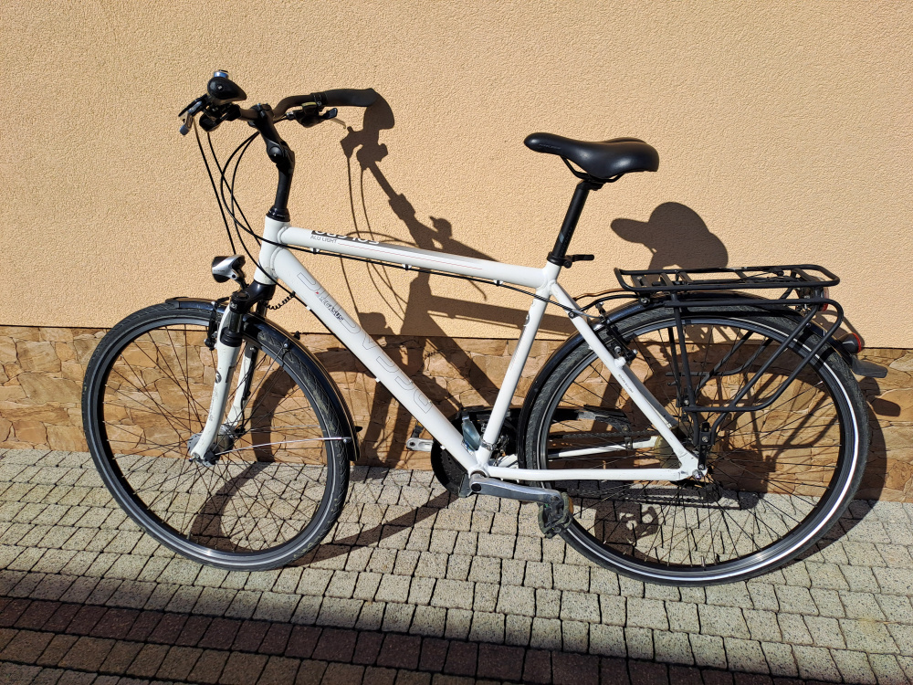 Sprzedam rower trekkingowy Pegasus Solero Alu Light. Rower posiada aluminiową ramę, 3 biegi na przedniej zębatce oraz 8 biegów na tylnej, przekładnia Shimano Deore, koła w rozmiarze 28 cali, opony Schwalbe, hamulce Tektro, widelec SR Suntour, dynamo w przedniej piaście.