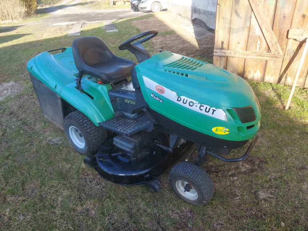Urządzenie przystosowane do koszenia trawników również na pochyłosciach ponieważ wyposażony jest w pompę oleju. Solidna konstrukcja i niezawodny silnik gwarantują długą żywotność. Silnik jak i reszta podzespołów chodzą bardzo dobrze. Kosisko 120cm kosi b