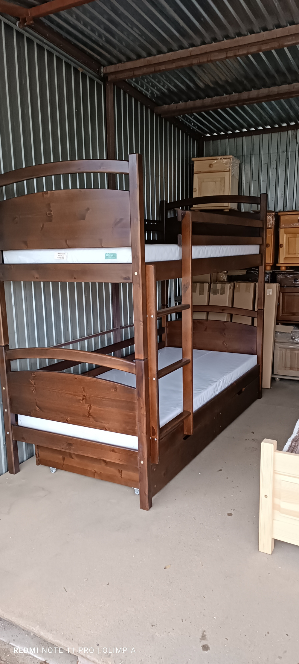 solidnie wykonane - skręcane śrubami, wraz z materacem sprężynowym. Cena kpl.1000zł dotyczy łózka w lakierze bezbarwnym bez szuflad