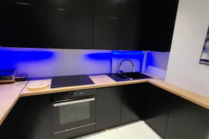 - kuchnia: wykonana na wymiar, zaprojektowana z dbałością o każdy detal oraz z myślą o funkcjonalności oraz estetyce