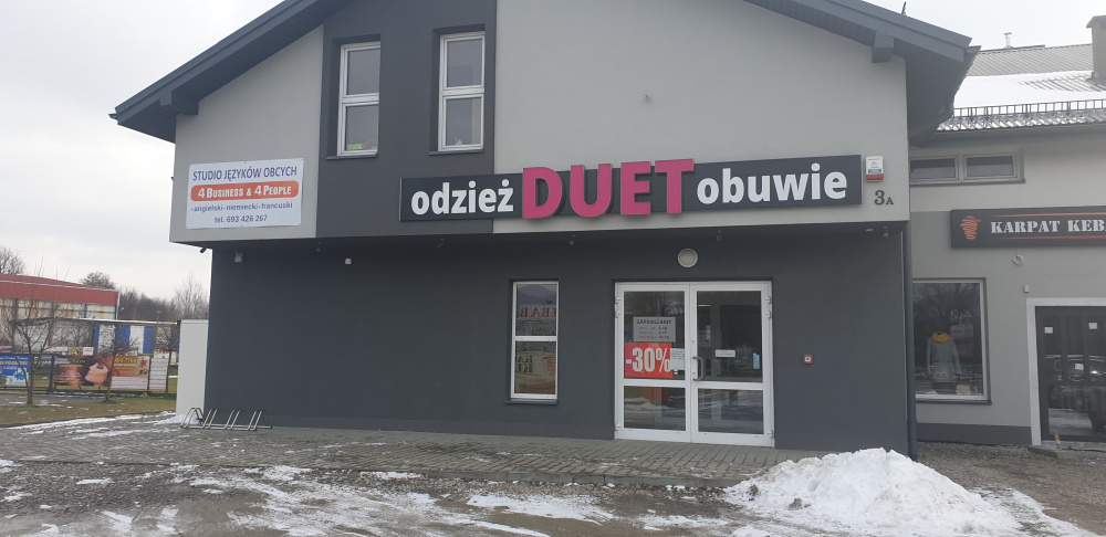 Totalna wyprzedaż odzieży obuwia w sklepie Duet w Korczynie -50% -70%
