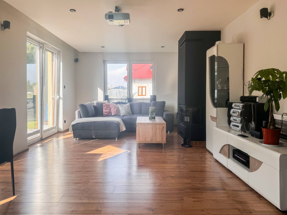 Dom został wybudowany w 2005 roku z materiałów energooszczędnych. Był zamieszkały tylko przez 5 lat. Dom jest ocieplony, pokryty blachodachówką, okna drewniane, na podłogach położony parkiet i płytki. Dom ma ok. 240 m2 powierzchni użytkowej oraz ok. 30 m2 powierzchni garażu.