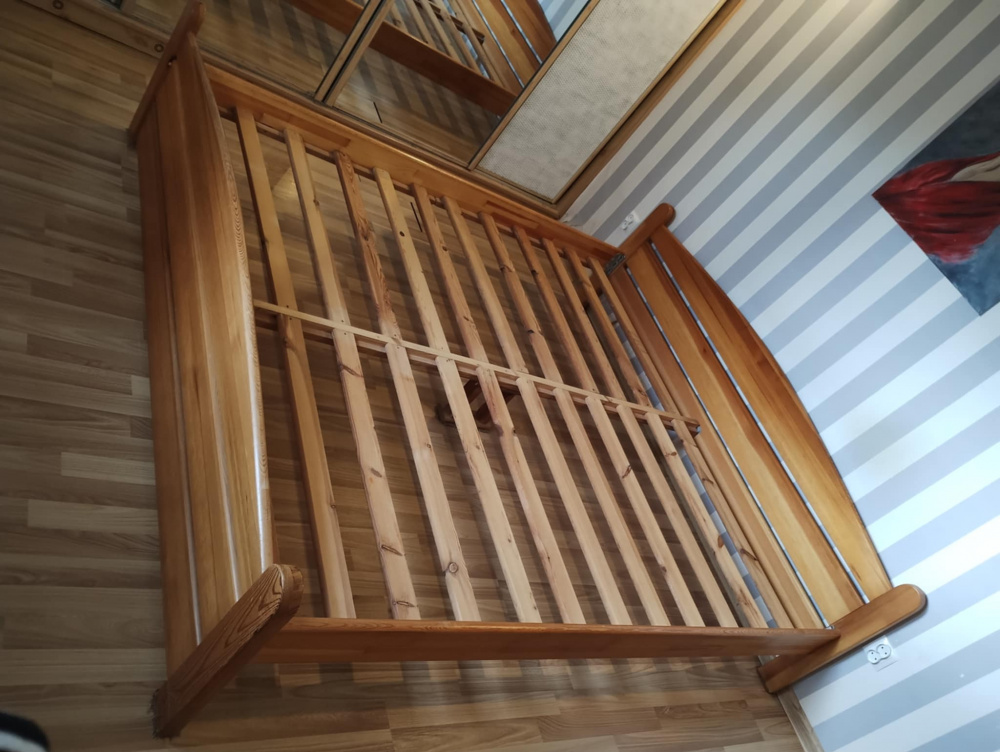 1. łóżko bez materaca jak na zdjęciu. Wymiary: szer. 180 cm; dł. 200 cm. Stan dobry.
