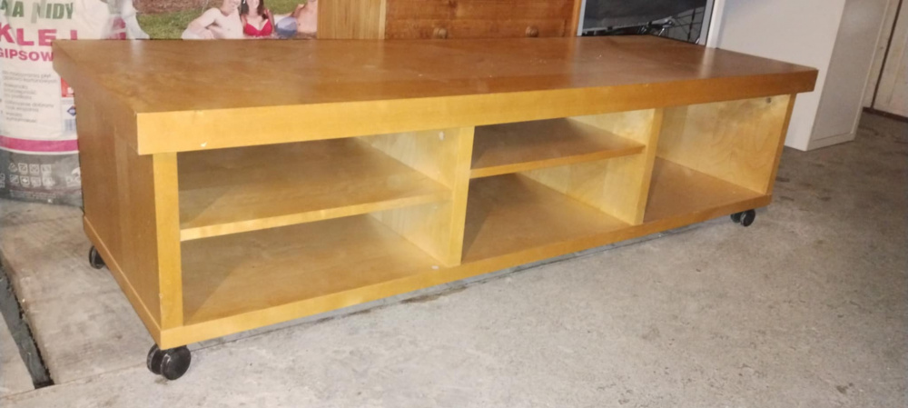 3. szafkę pod telewizor jak na zdjęciu. Wymiary: szer. 150 cm; głębokość 50 cm; wys. 39 cm. Stan dobry.