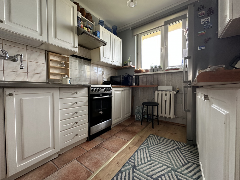W skład mieszkania wchodzą: przedpokój, dwa pokoje, jasny salon z wyjściem na balkon, oddzielna kuchnia, łazienka oraz osobne WC.