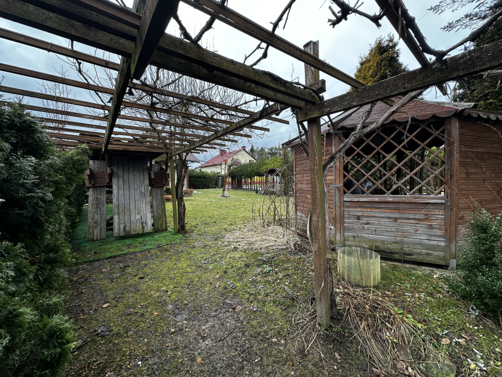 ... (pokaż całość)ada huśtawki i dodatkowe nasadzenia, co tworzy przyjemne miejsce do wypoczynku. Dostępne media to prąd, woda i kanalizacja, a gaz jest w niedalekiej odległości. Dojazd do jednej działki odbywa się bezpośrednio z drogi głównej, do drugiej z drogi z kostki granitowej. Działki dają potencjał możliwości budowy garaży bądź mniejszych budynków.