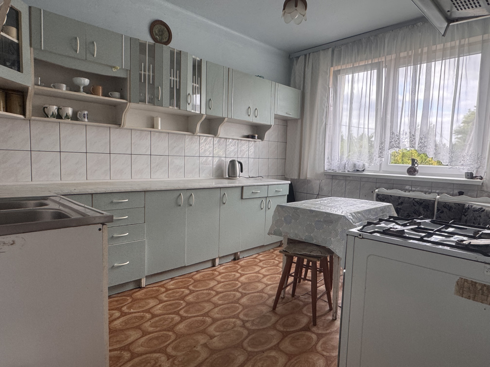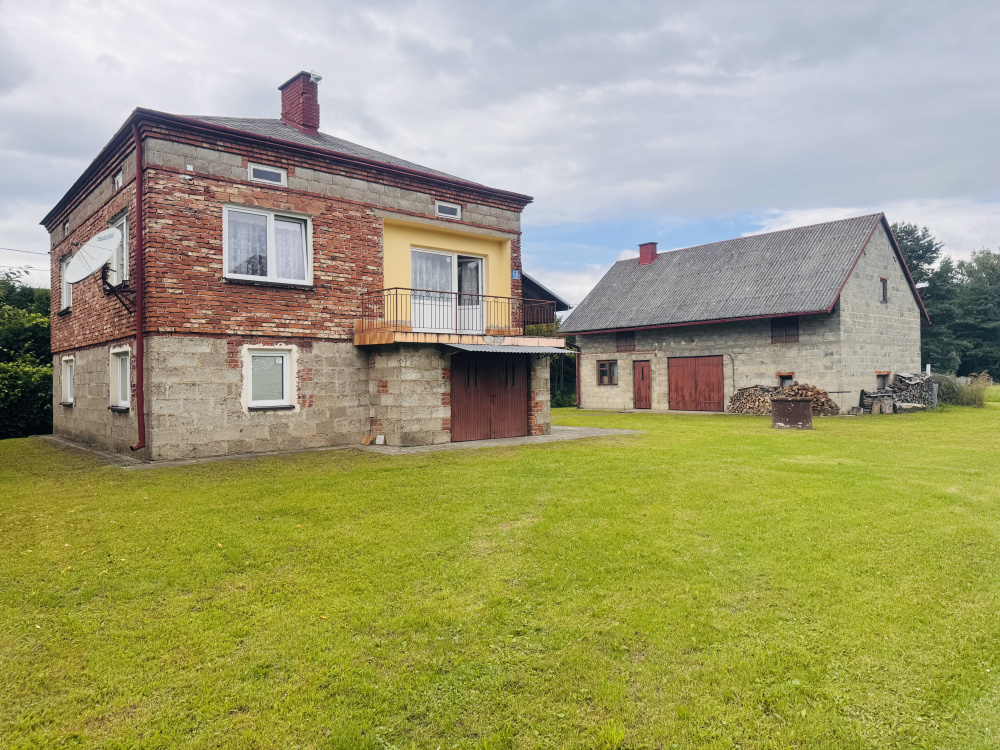 Dom o powierzchni ok. 140 m² został wybudowany w latach 70. z cegły i pustaka. Nieruchomość posiada wygodny asfaltowy dojazd, a otoczenie stanowi luźna zabudowa jednorodzinna, gwarantująca prywatność i spokój.