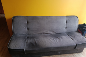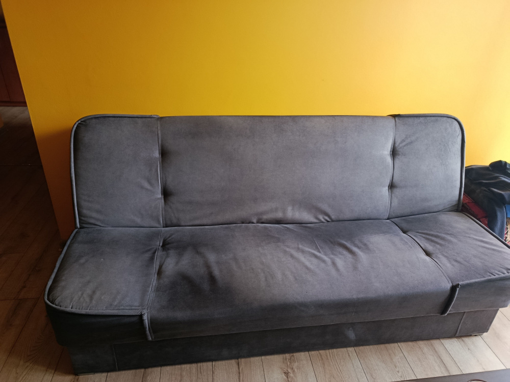 Do oddania solidna 4 letnia wersalka. Wersalka w stanie dobrym, nie jest wygnieciona a jedynym mankamentem jest to, że miękkie obicie welurowe wizualnie sprawia taki efekt, gdyż welur jest lużny.