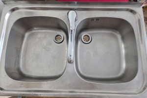 Sprzedam Dwukomorowy stalowy zlew w bardzo dobrym stanie. Naszafkowy.