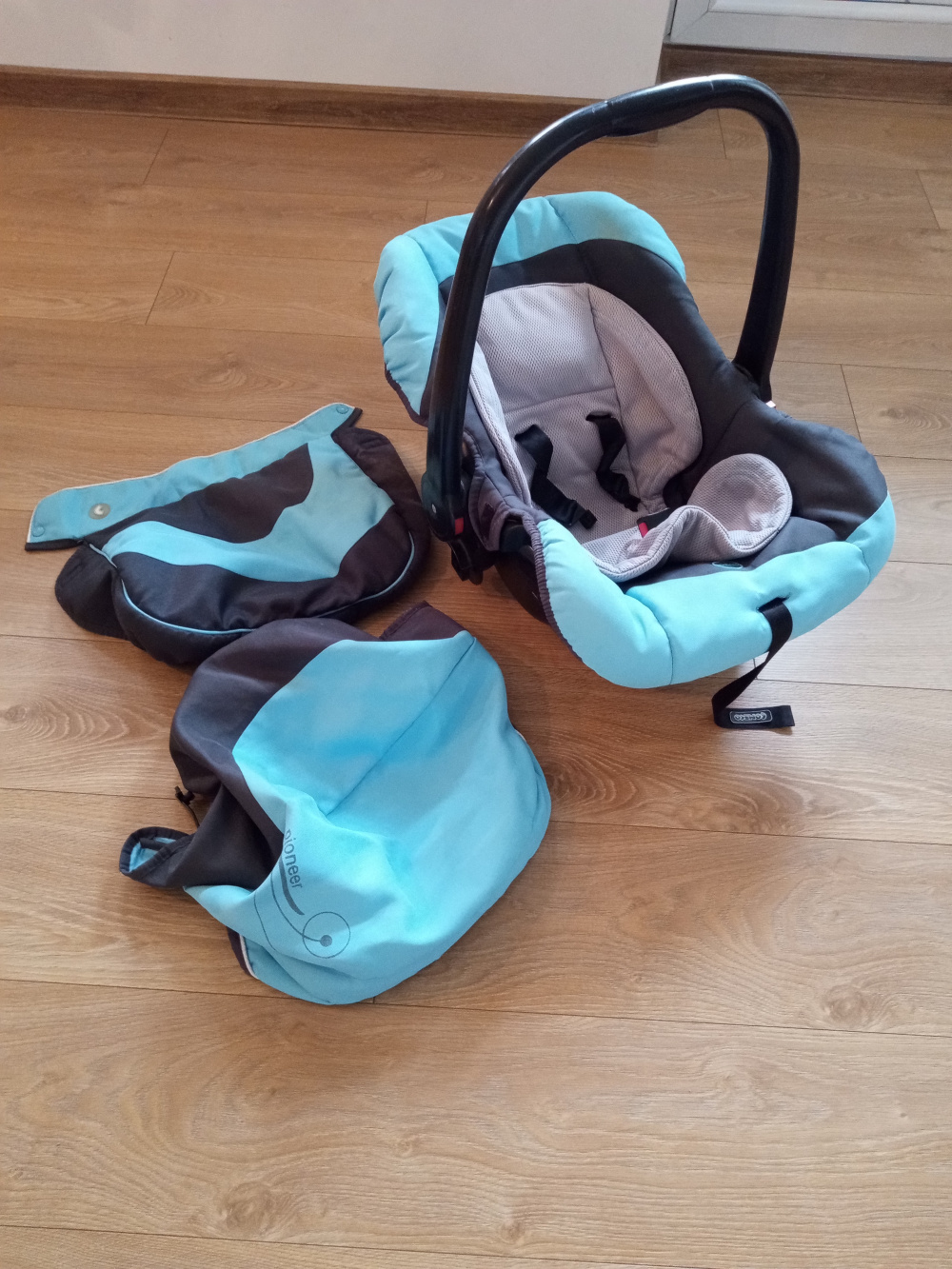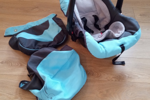 Fotelik posiada adaptery do mocowania na wózku Coneco (być może jest też kompatybilny z innymi wózkami - do sprawdzenia na miejscu).