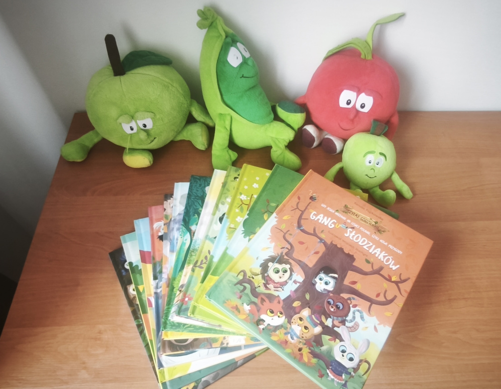 Oddam 12 książeczek gang słodzików oraz 4 maskotki jak na zdjęciu