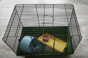 Oddam klatkę dla chomika z kółkiem i poidełkiem